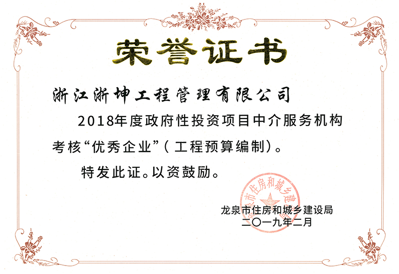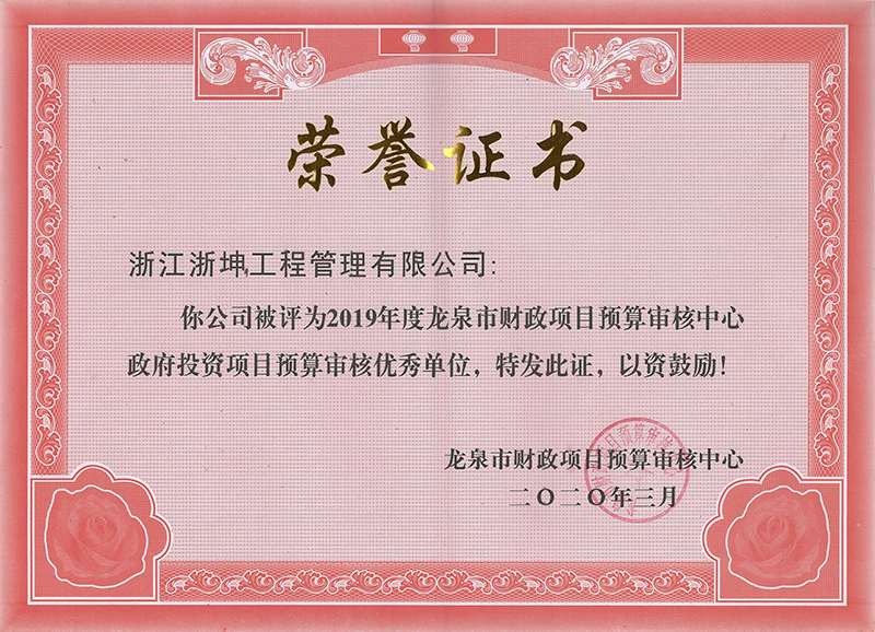 2019年龙泉市财政项目预算审核中心政府投资项目预算审核优秀单位