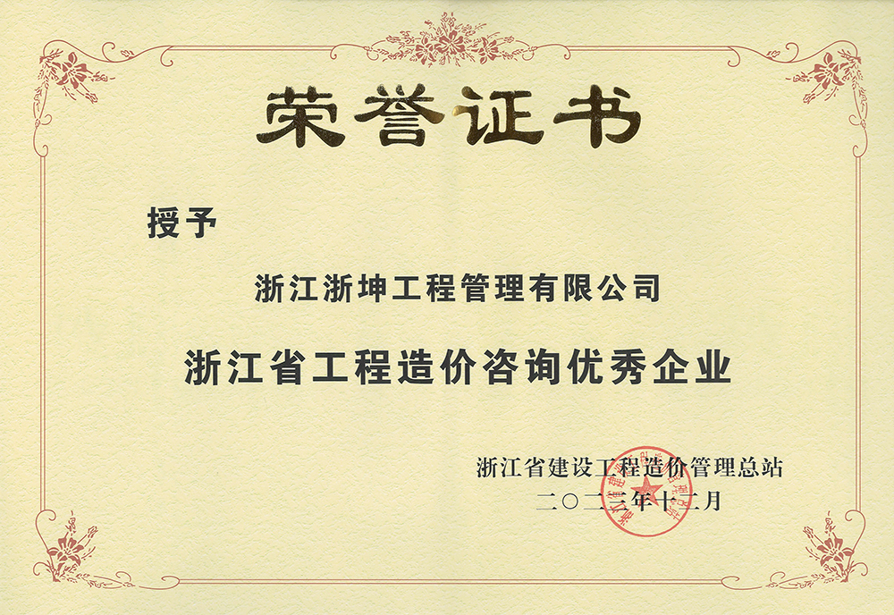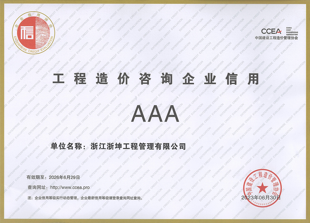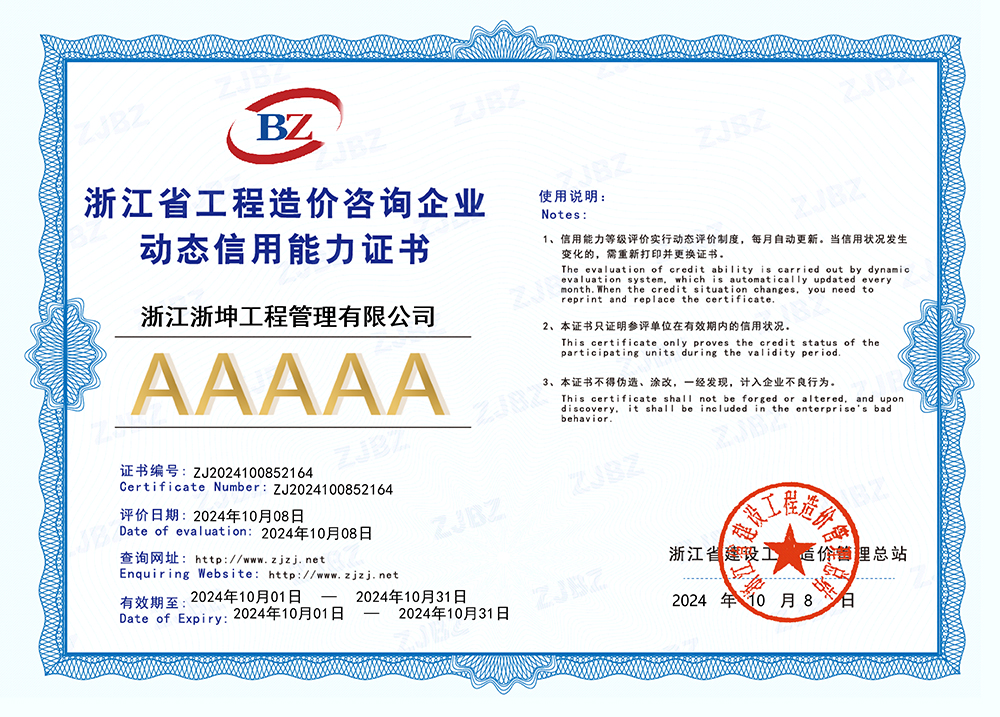 2024年浙江省工程造价咨询企业动态信用能力证书AAAAA